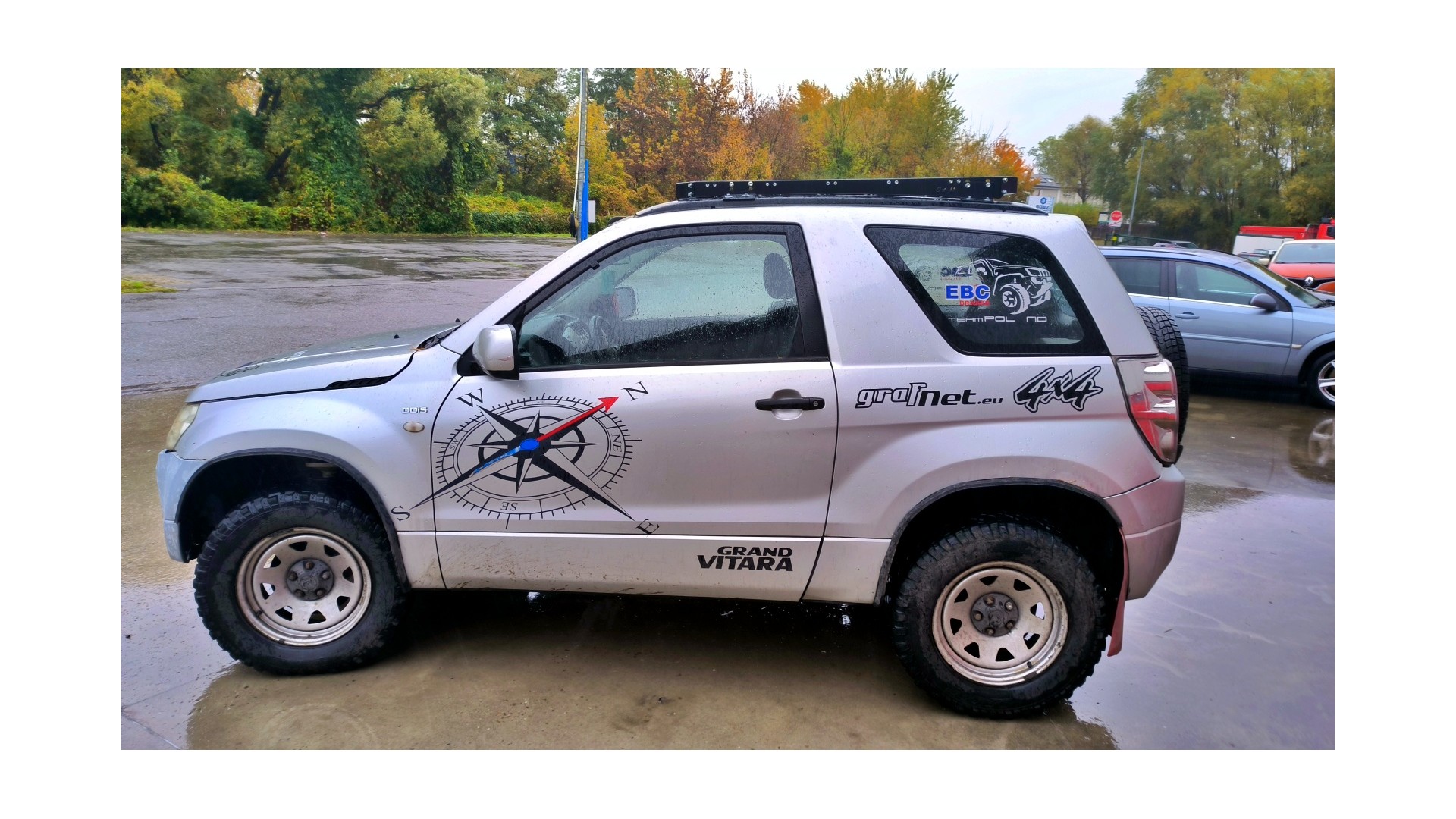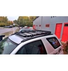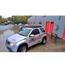 Bagażnik dachowy do Suzuki Grand Vitara II generacji, wersja trzydrzwiowa. Platformowy, skręcany, montowany w oryginalne miejsca na dachu. Bagażnik malowany proszkowo (podkład + nawierzchnia), w zestawie uchwyty montażowe i komplet śrub.