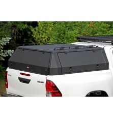 Hardtop do Toyoty Hilux Revo wykonany został z aluminium o grubości 3mm i jest konstrukcją samonośną. Jego wieniec górny oraz potężne, narożne słupy stanowią mocną podstawę do montażu na hardtopie bagażników dachowych bądź namiotów co w przypadku konstrukcji kompozytowych często jest niemożliwe ze względu na ich zbyt słabą wytrzymałość. Dla ułatwienia montażu bagażników lub namiotów dachowych na hardtopie przewidzieliśmy relingi wyposażone w otwory montażowe umożliwiające regulację góra - dół dla przykręcanych elementów.
