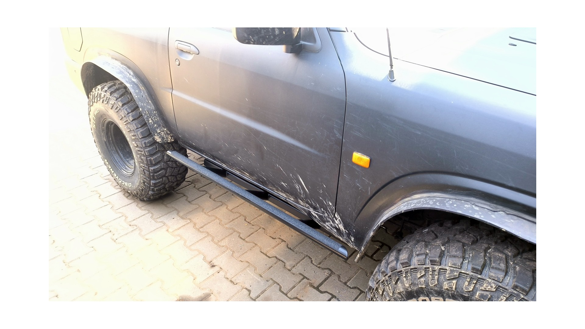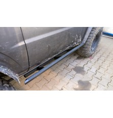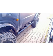 Stalowe progi do trzydrzwiowej wersji Nissan Patrol Y61. Przykręcane do ramy, malowane proszkowo, bardzo mocne i wytrzymałe. Chronią samochód, nie gromadzą błota, można za nie podnieść samochód za pomocą hilifta. Naklejana taśma antypoślizgowa (jak się zużyje łatwo ją wymienić).