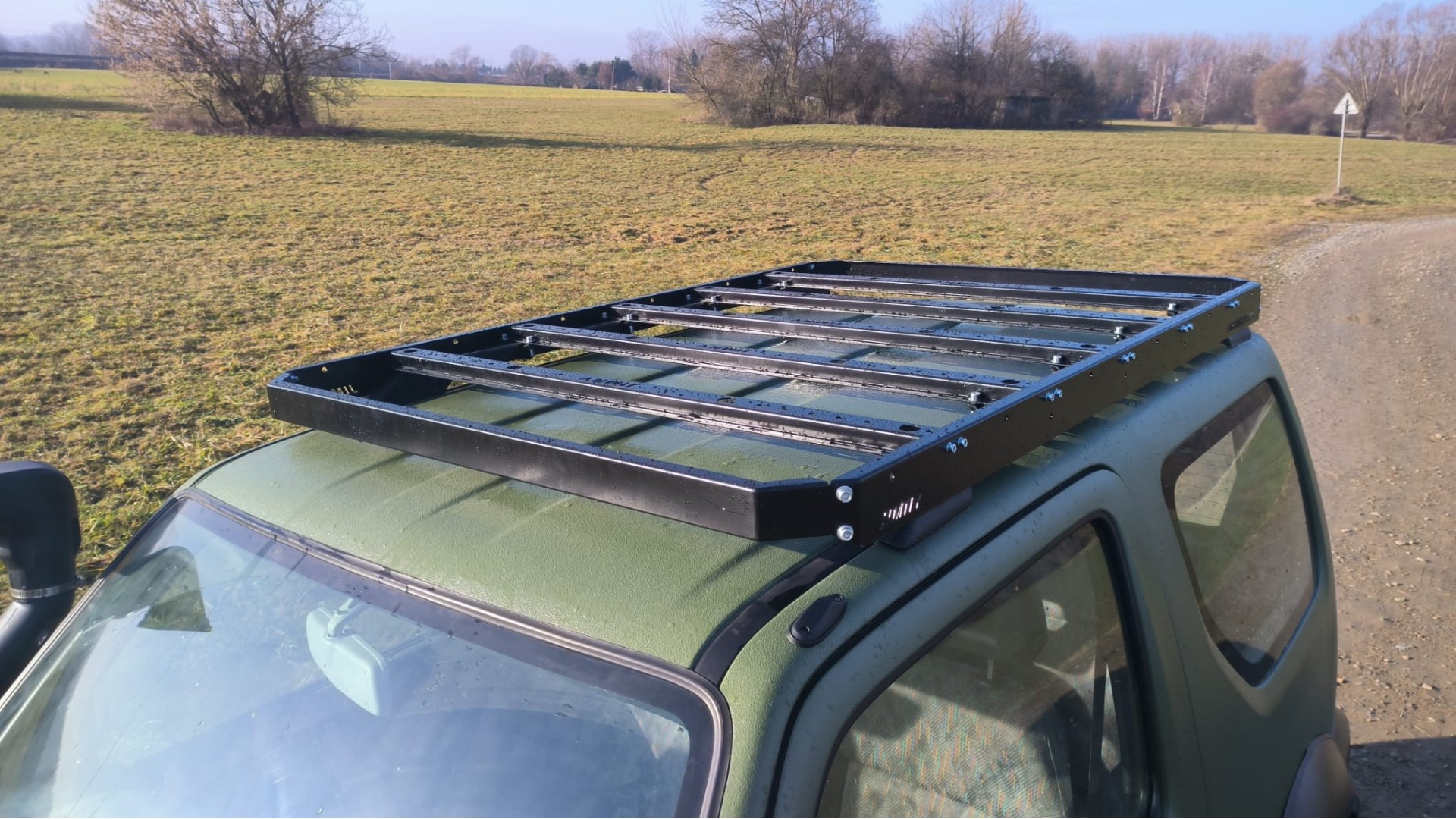 Lekki, wytrzymały, platformowy bagażnik dachowy do Suzuki Jimny. Lakierowany proszkowo dwuwarstwowo (podkład cynkowy + nawierzchnia).W zestawie potrzebne śrubki itd. Przykręcany w miejsce oryginalnych relingów.